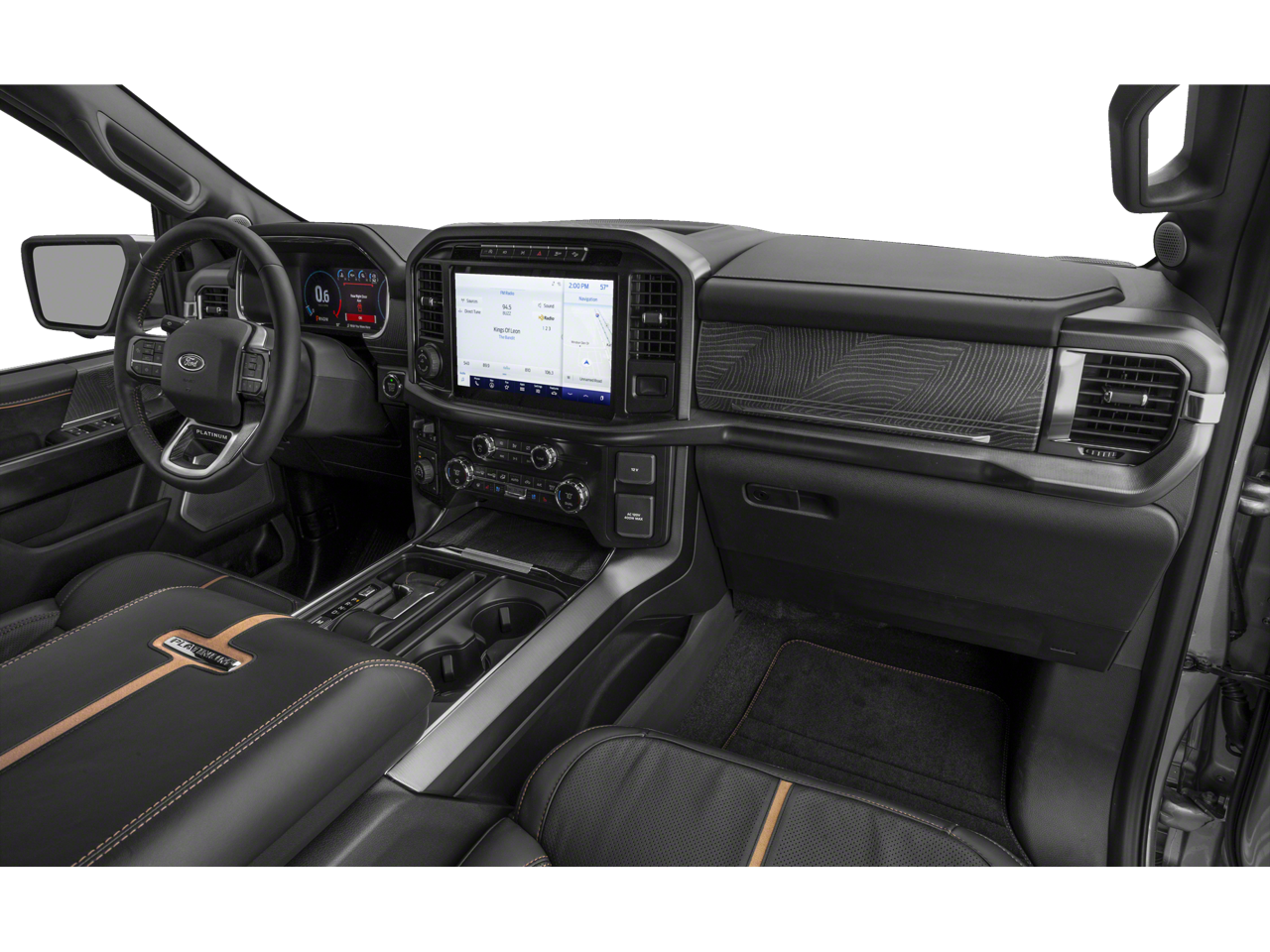 FX4 Off-Road Package: Off-Road Tuned Front Shock Absorbers; Skid Plates; Monotube Rear Shocks; Rock Crawl Mode; 4x4 FX4 Off-Road Bodyside Decal; Hill Descent Control; Electronic Locking with 3.31 Axle Ratio; Tray Style Floor Liner. Equipment Group 701A High: 275/60R20 BSW AT Tires; B&O Unleashed Sound System by Bang & Olufsen Radio; Electronic 10-Speed Automatic Transmission; 7. 050 lbs Payload Package GVWR. Platinum Black Appearance: Dark-Tinted Taillamps; Unique Multi-Contour Leather Bucket Seats; Black Exterior Badging; 20" Gloss Black Painted Aluminum Wheels; Black Belt Moldings; Unique Hood and Grille with Black Accent; Black Front Tow Hooks; Body-Color Door Handles and Mirror Caps; Power-Deployable Running Boards with Black Accent; Dark Interior Appliques; Black Tailgate Applique; Black Taillamp Bezels. Trailer Tow Package: Integrated Trailer Brake Controller; Class IV Trailer Hitch Receiver; Pro Trailer Backup Assist. Tow Technology Package: 360 Degree Camera; Pro Trailer Backup Assist. Bed Utility Package: BoxLink; LED Box Lighting; Tailgate Step with Tailgate Work Surface; Power Tailgate. Ford Co-Pilot360 Active 2.0: BlueCruise; Active Park Assist 2.0. Twin Panel Moonroof. 360 Degree Camera. Smoked Quartz Met CC. Extended Range 36 Gallon Fuel Tank. Electronic Locking with 3.31 Axle Ratio. Tray Style Floor Liner. Skid Plates. BoxLink. **Equipment listed is based on original vehicle build and subject to change. Please confirm the accuracy of the included equipment by calling the dealer prior to purchase.**