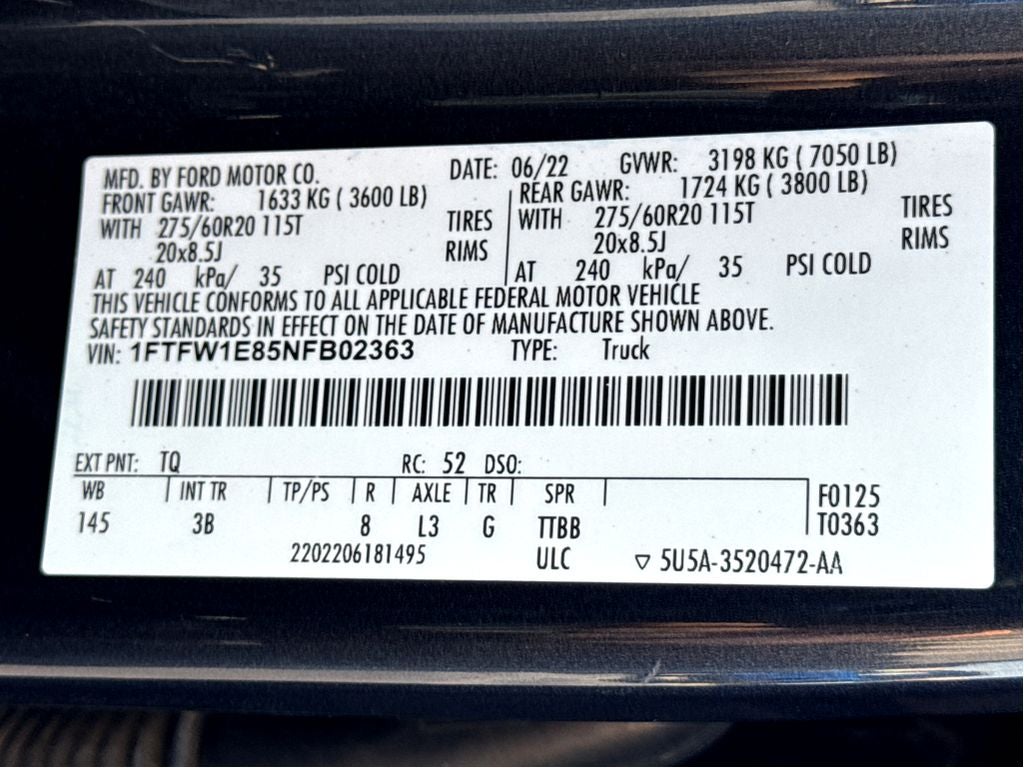 An off-road package is installed on this unit so you are ready for your four-wheeling best. Our dealership has already run the CARFAX report and it is clean. A clean CARFAX is a great asset for resale value in the future. It has automated speed control that adjusts to maintain a safe following distance, enhancing highway driving convenience. The leather seats in this model are a must for buyers looking for comfort, durability, and style. See what's behind you with the back up camera on this 2022 Ford F-150 . Keep your hands warm all winter with a heated steering wheel in this vehicle . Start this 1/2 ton pickup from inside with remote start. The vehicle offers Apple CarPlay for seamless connectivity. You'll never again be lost in a crowded city or a country region with the navigation system on it. The vehicle features a hands-free Bluetooth® phone system.